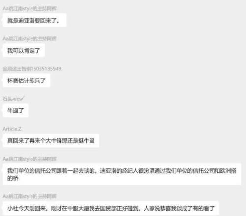 不久前有平台出现消息,传上赛季山西队强力外援迪亚洛将回归,继续为山西队效力。该聊天群中说的情况看起来不像是假的,称是通过信托公司和欧洲俱乐部搭的桥。