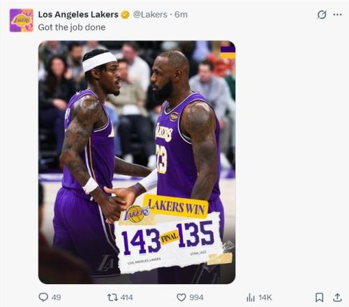 NBA战报:湖人143135爵士取NBA3连胜,东契奇45+10+14